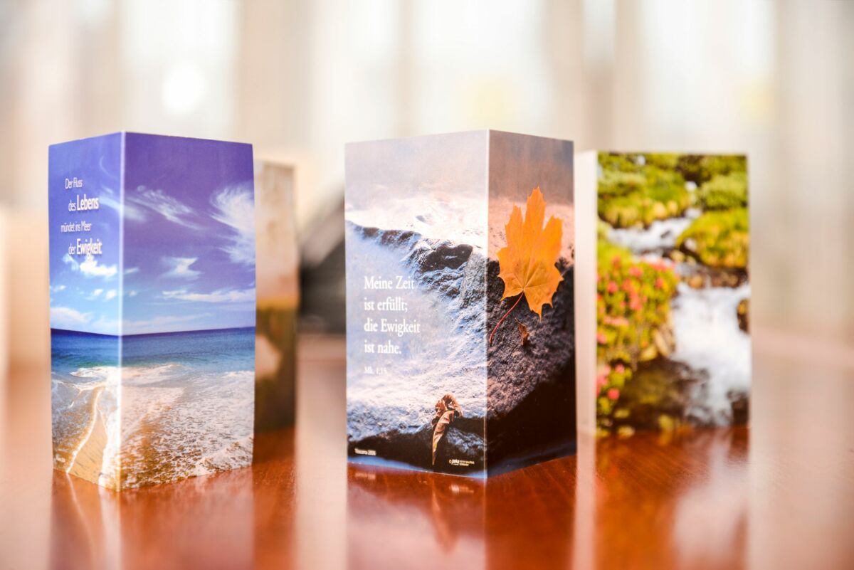 Erde, Feuer, See – drei Bestattungsarten, viele Beisetzungs­möglich­keiten. Noch ist in unserer Region die Tradition des Familiengrabes weit verbreitet. Haben Sie kein Familiengrab und hat sich Ihre Angehöriger zu Lebzeiten nicht geäußert, wie und wo er bestattet werden möchte, zeigen wir Ihnen auf, welche Möglichkeiten es gibt. Dabei helfen wir Ihnen dann eine Entscheidung zu treffen, die Ihrer Trauerarbeit guttut. Grundsätzlich raten wir zu einer Bestattungsform, bei der Sie später einen festen Ort, einen Grabstein oder zumindest eine Namenstafel aufsuchen, an der Sie Blumen ablegen und sich dem geliebten Angehörigen nahe fühlen können. Aber natürlich kann es auch gute Gründe für alternative Bestattungsformen geben.